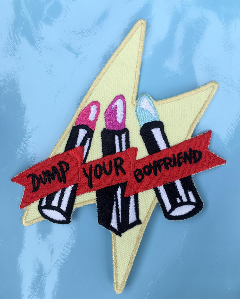 BACK IN STOCK! High quality embroidered 'Dump your boyfriend' patch!!! 13 cm tall. Looks amazing on a denim jacket, backpack or on your girl guides sash!!!