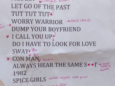 Grab yourself a limited edition set list that either Nadia, Harriet or Beverley used on the Specials Encore 40th Anniversary tour! The name of the city the set list was used will be written at the top and will have handwritten notes and reminders on it! If you would like to request a certain city in advance then leave us a note. FIRST COME FIRST SERVED.